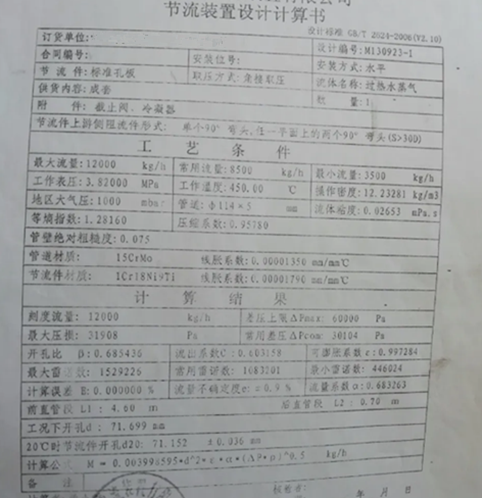 4、根據(jù)孔板計(jì)算書中數(shù)據(jù),流量采用的是減壓前的中壓蒸汽的溫度、壓力及相關(guān)參數(shù)進(jìn)行的計(jì)算,最大差壓60kpa,最大流量12000m3/h。