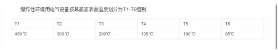 必須根據(jù)點燃溫度所決定的爆炸性氣體的組別來選擇相應溫度組別的防爆儀表, 如乙炔為 T2 溫度組別,石汕為 T3 溫度組別。