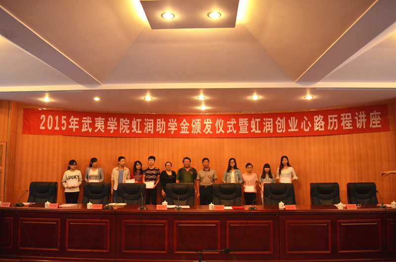 9月15日下午,我校2015年虹潤助學(xué)金頒發(fā)儀式在圓型會議室隆重舉行。校黨委副書記姚進生,校董事會董事、福建順昌虹潤精密儀器有限公司董事長林善平先生,校董事會常務(wù)副董事長郭翠蓮,校董事會秘書長何長輝,相關(guān)部門領(lǐng)導(dǎo)及各學(xué)院師生代表參加了頒發(fā)儀式。儀式由學(xué)生處副處長劉廉明主持。