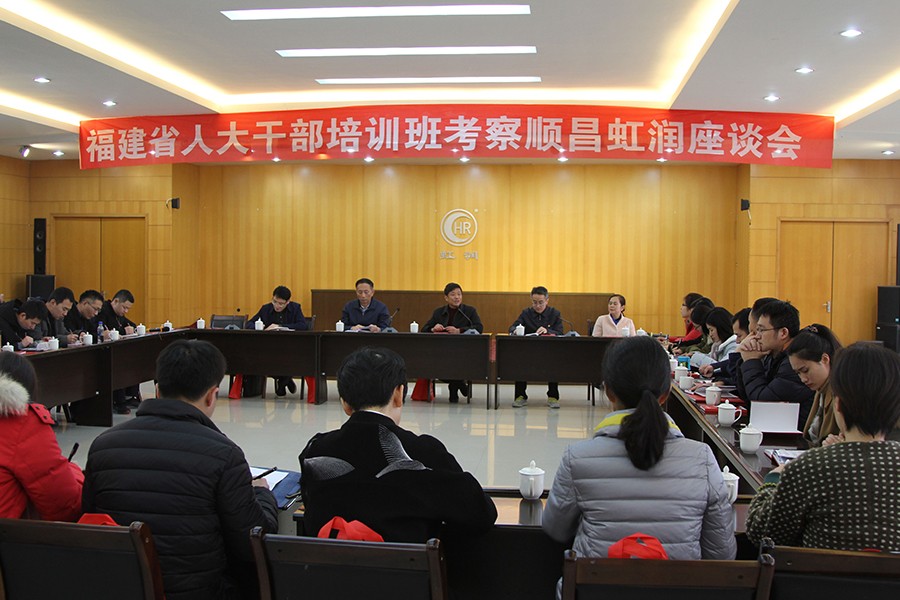2019年3月5日,福建省人大干部培訓班一行40余人在福建省人大常委會副秘書長李鳴帶領下,由順昌縣縣委常委林福燦、縣人大副主任林瑞英陪同,來到福建順昌虹潤精密儀器有限公司觀摩考察學習。副秘書長李鳴一行在省人大代表、公司董事長林善平的陪同下參觀了虹潤公司文化展廳、產品展廳。隨后林善平代表應邀在公司四樓禮堂作“做好儀表,當好代表”的主題講座。