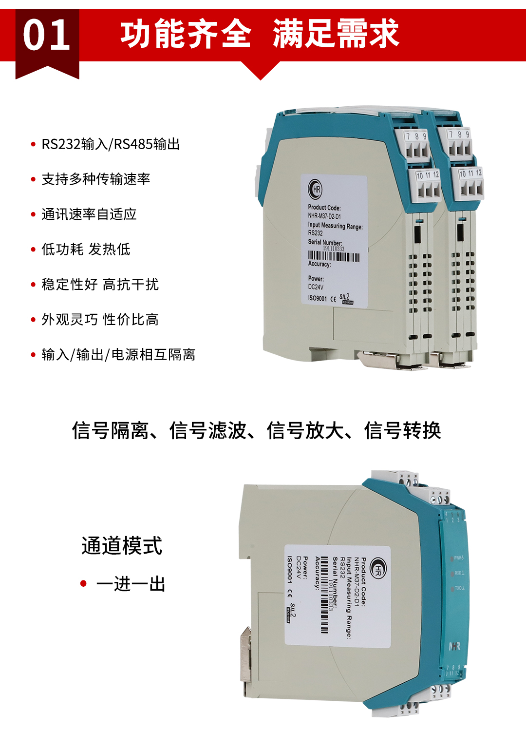 NHR-M37系列隔離通訊轉(zhuǎn)換器將RS232信號(hào)轉(zhuǎn)換成RS485信號(hào),用于可編程控制器(簡稱PLC)、DCS、PCS、計(jì)算機(jī)等控制、數(shù)據(jù)采集、報(bào)警系統(tǒng)的開關(guān)量輸入擴(kuò)展。