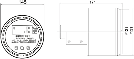 M3指示器如上圖所示,該殼體為圓型金屬殼體,內(nèi)置HR-F型智能線路板,隔爆殼體設(shè)計(jì),防爆標(biāo)志d II CT6,該指示器無(wú)單獨(dú)的現(xiàn)場(chǎng)指針指示瞬時(shí)流量,只有液晶數(shù)字顯示瞬時(shí)/累計(jì)流量。除此之外,報(bào)警方式、脈沖輸出4~20mA信號(hào)輸出、電池供電方式等功能與M2完全相同。