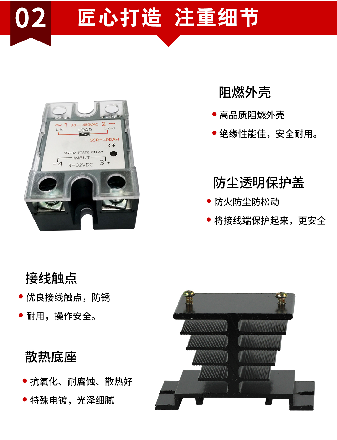 NHR-SSR固態(tài)繼電器尺寸小巧,內置壓敏電阻及阻容吸收回路,具有吸收電網尖峰電壓抗干擾能力??赏ㄟ^動作指示燈來檢查工作狀態(tài),寬電壓輸出,可達到AC38-480V,低觸發(fā)電流小干8mA。