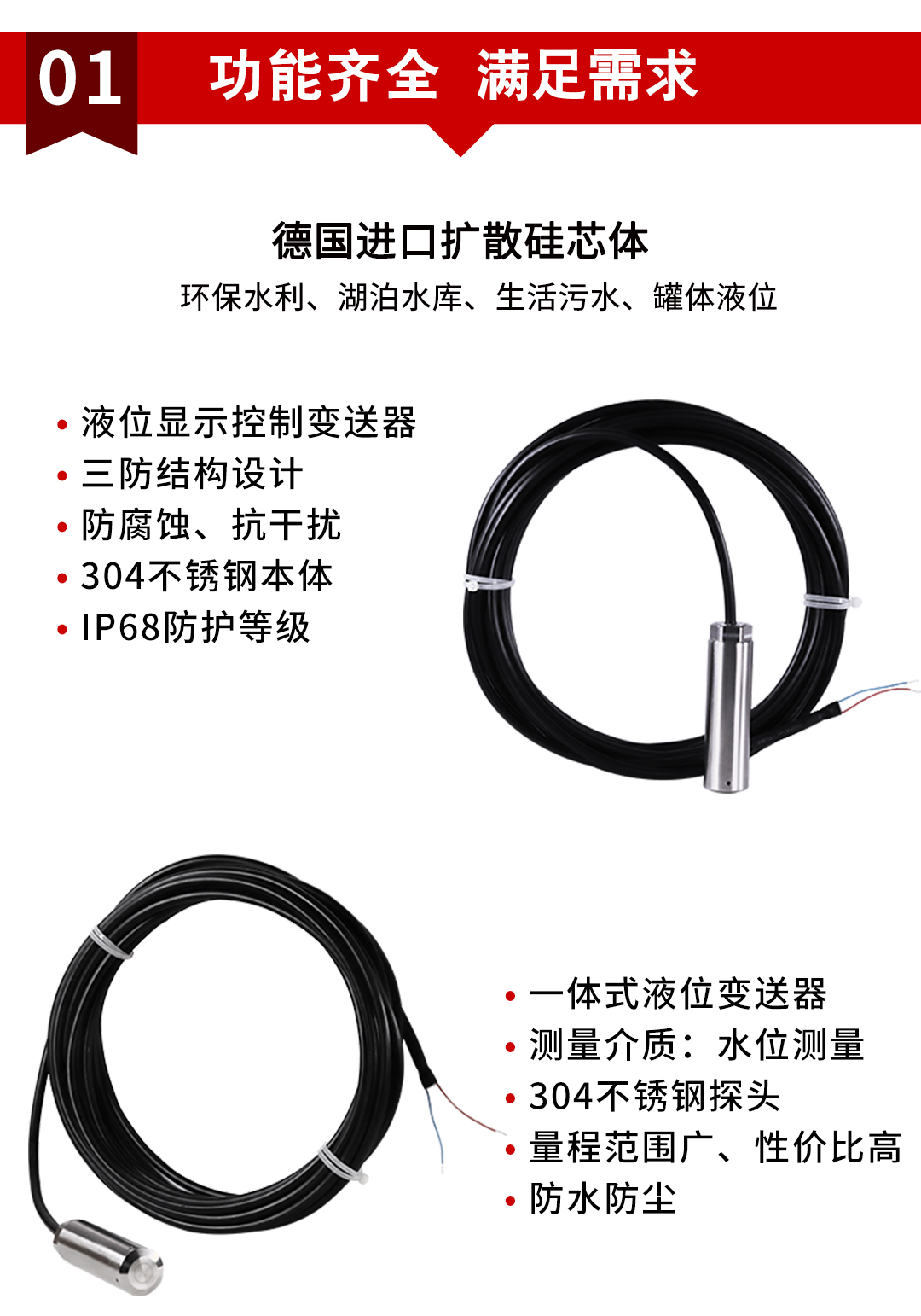 HR-L系列靜壓液位變送器使用進(jìn)口高精度、高穩(wěn)定性擴(kuò)散硅壓力敏感芯片,通過高可靠性的放大電路,將被測(cè)液體的液位信號(hào)轉(zhuǎn)換成4~20mA DC標(biāo)準(zhǔn)信號(hào)。