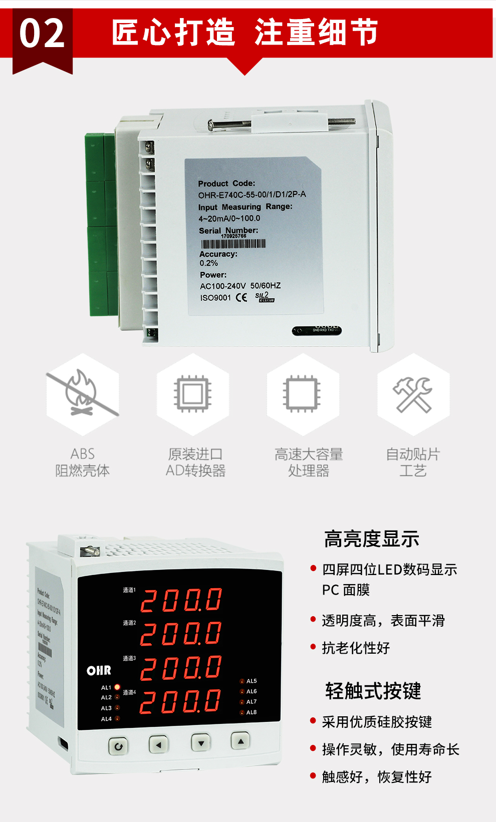 OHR-E740系列四回路測量顯示控制儀針對現(xiàn)場溫度、壓力、液位、速度等各種信號進(jìn)行采集、顯示、控制、遠(yuǎn)傳、通訊、 打印等處理,構(gòu)成數(shù)字采集系統(tǒng)及控制系統(tǒng)。
