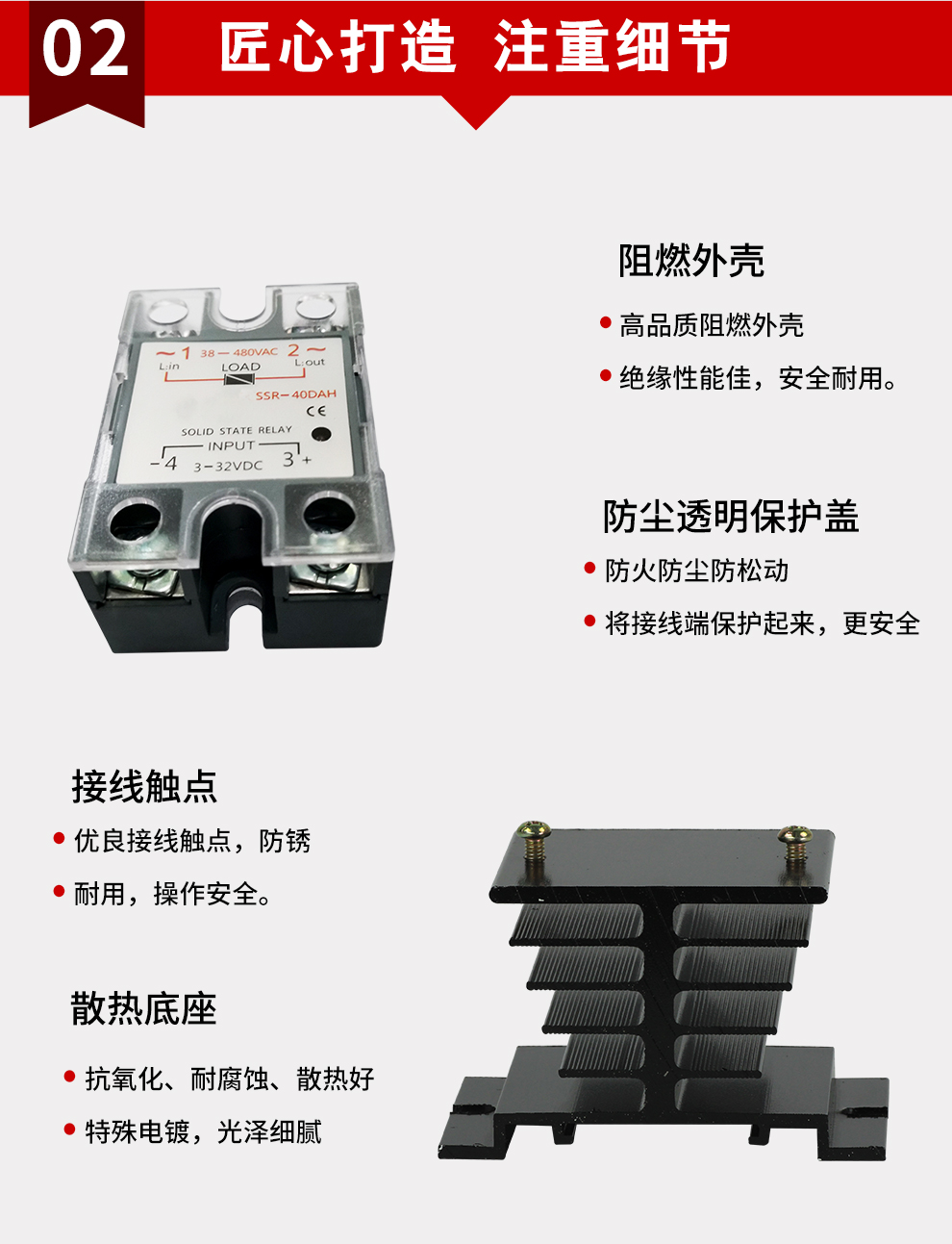 OHR-SSR固態(tài)繼電器尺寸小巧,內(nèi)置壓敏電阻及阻容吸收回路,具有吸收電網(wǎng)尖峰電壓抗干擾能力。可通過(guò)動(dòng)作指示燈來(lái)檢查工作狀態(tài),寬電壓輸出,可達(dá)到AC38-480V,低觸發(fā)電流小干8mA。
