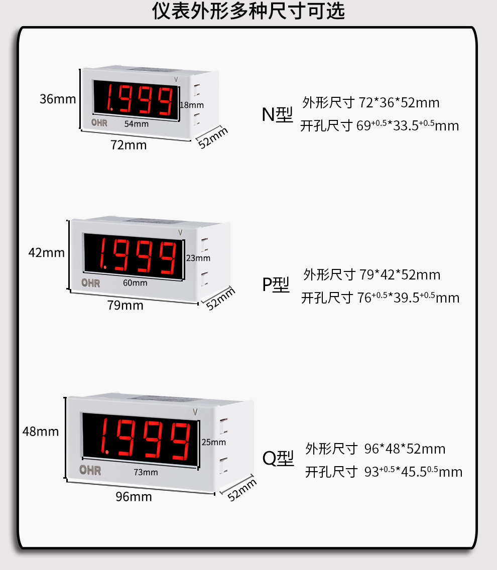 OHR-D300系列電壓/電流表是一種小體積的經(jīng)濟(jì)型數(shù)字式電測(cè)儀表,主要用于對(duì)電氣線路中的交直流電壓或交直流電流進(jìn)行實(shí)時(shí)測(cè)量,并用LED數(shù)碼管以數(shù)字直讀方式進(jìn)行顯示。產(chǎn)品具有穩(wěn)定性好,抗干擾性強(qiáng),性價(jià)比高等優(yōu)點(diǎn),且產(chǎn)品體積小,可直接替代原有指針式儀表。廣泛應(yīng)用于穩(wěn)壓器、點(diǎn)焊機(jī)、校驗(yàn)臺(tái)等電氣設(shè)備或系統(tǒng)中。