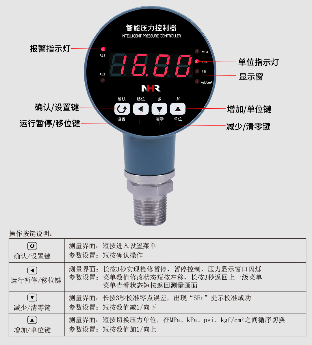 NHR-DP20系列智能壓力控制器是集壓力測量,顯示,輸出,控制于一體的智能數(shù)顯壓力測控產品。廣泛應用于水電 ,自來水,石油,化工,機械,液壓等行業(yè),對流體介質的壓力進行現(xiàn)場測量顯示和控制。