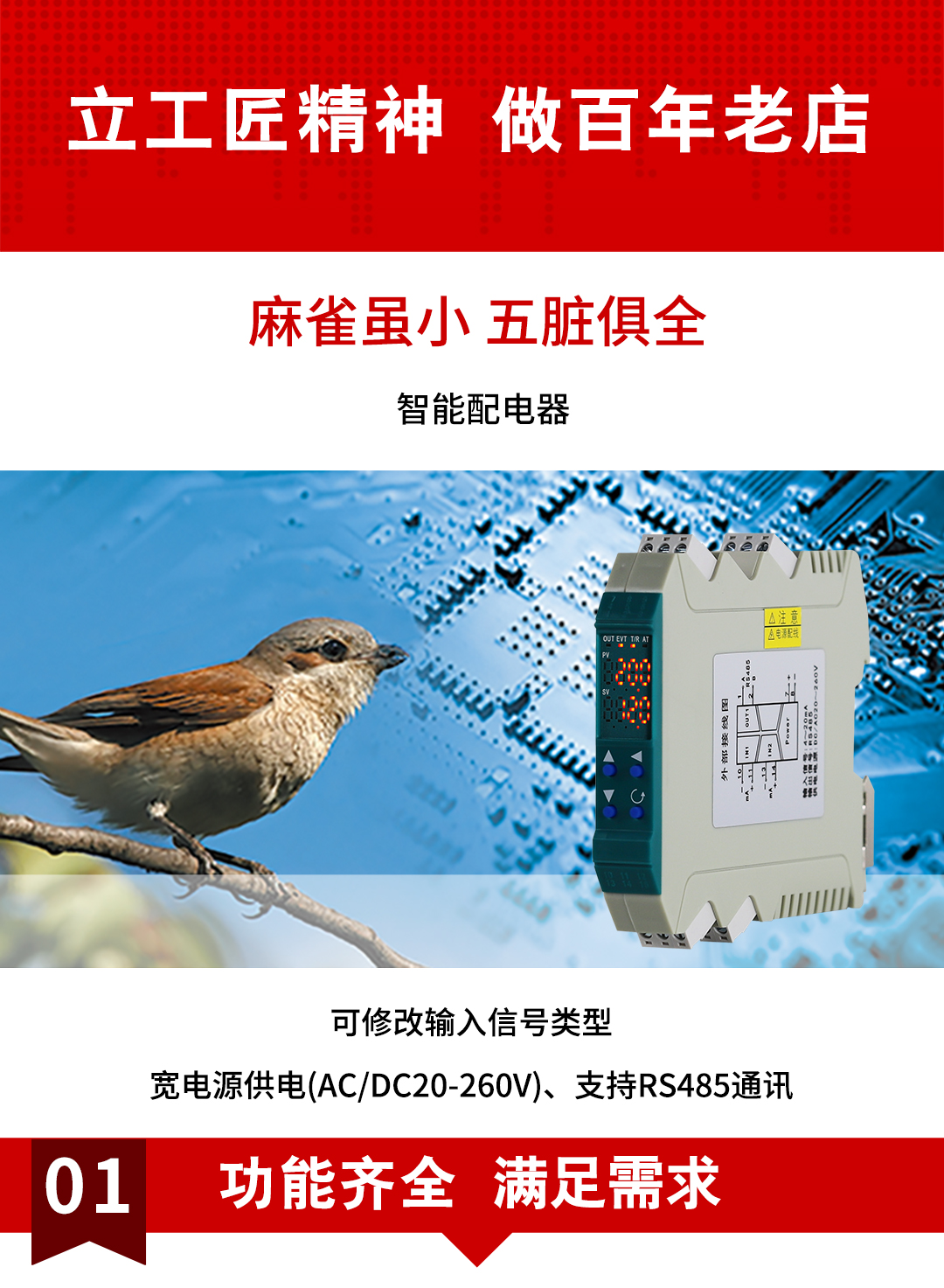 NHR-X33系列導(dǎo)軌式智能配電器給二、三線制變送器提供隔離的電源電壓,將變送器產(chǎn)生的直流電壓電流信號,經(jīng)本隔離器轉(zhuǎn)換成所需的輸出信號至控制系統(tǒng)。寬電源設(shè)計:20-260V交直流供電。配置高清顯示單元,通過輕觸按鍵設(shè)置每個通道的參數(shù)及每個通道之間的切換。