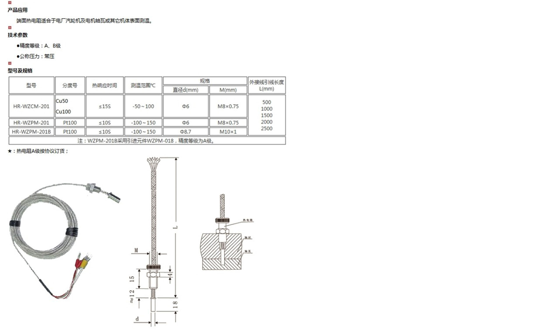 端面熱電阻元件由特殊處理的絲材(銅或鉑絲)繞制,它們緊巾在溫度計(jì)前端,與一般軸向熱電阻相比,端面熱電阻能更正確和迅速地反映被測端面的實(shí)際溫度狀況,它的制作方法很多,品種形式多樣,適合于電廠汽輪機(jī)及電機(jī)軸瓦或其它機(jī)體表面測溫。