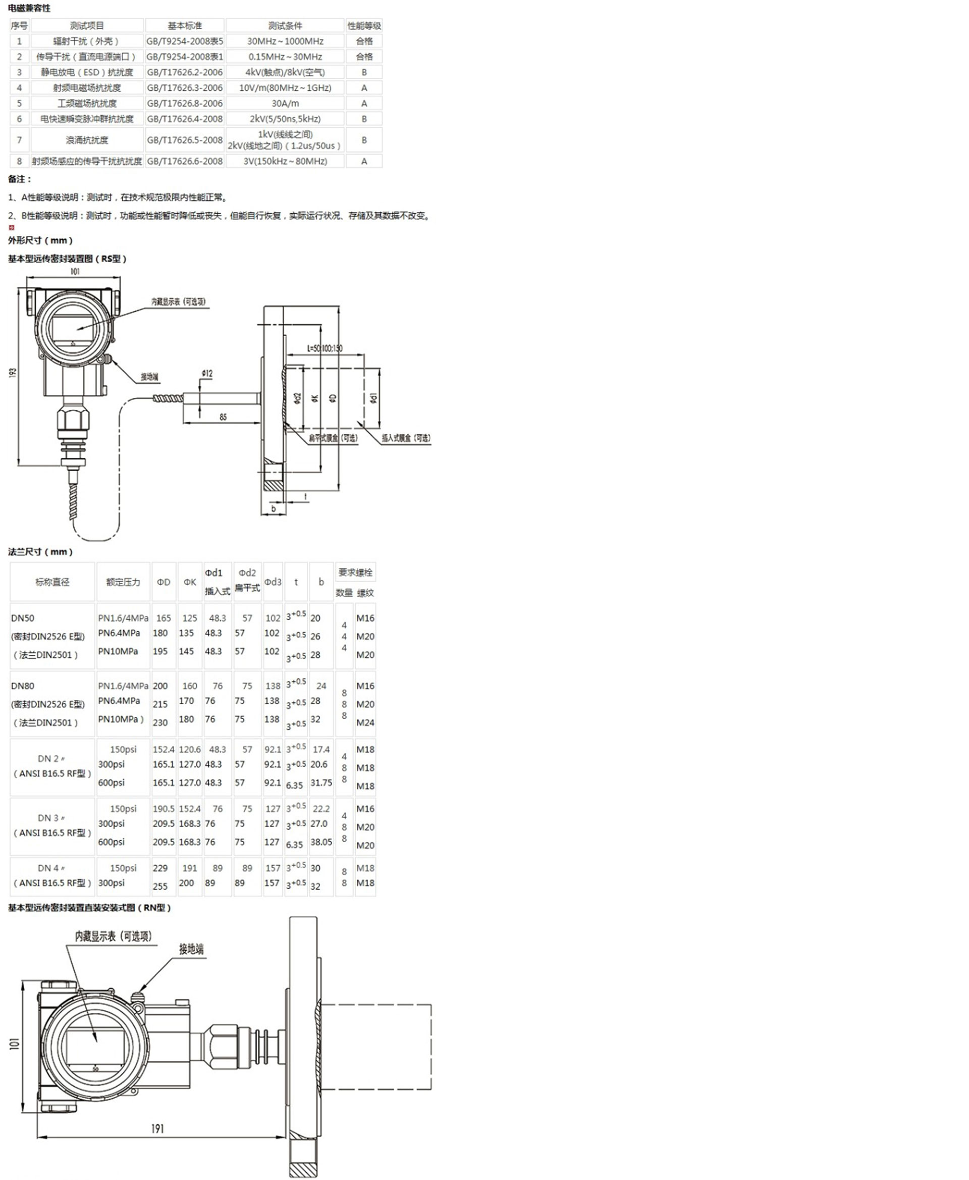 該產(chǎn)品用于測量液體、氣體或蒸汽的液位、密度、壓力,將其轉(zhuǎn)變成4~20mA (HART)電流輸出信號,可通過RST375手持終端對它們進行參數(shù)設(shè)定、過程監(jiān)控等。測量范圍(未遷移時)為0-6kPa~25MPa,液位法蘭的額定壓力分別為:1.6/4MPa、6.4MPa、10MPa、150psi、300psi或600psi。