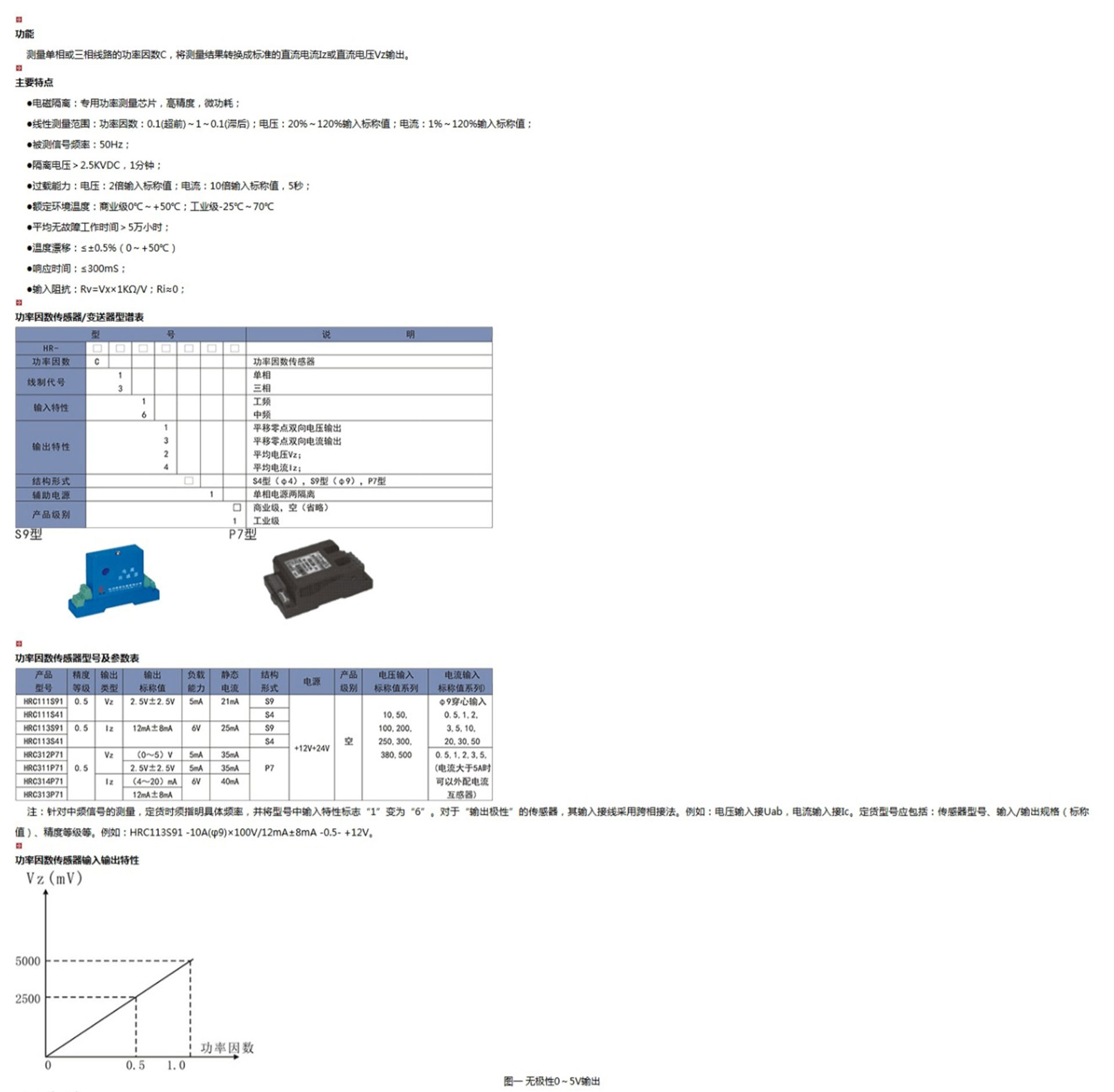 功率因數(shù)變送器功率因數(shù)變送器可將一負(fù)載的交流電流和電壓之間的功率因數(shù),轉(zhuǎn)換成按線性比例輸出的直流電流或電壓。配以相應(yīng)的指示儀表或裝置,可供電力系統(tǒng)或其它工業(yè)部門(mén)使用。